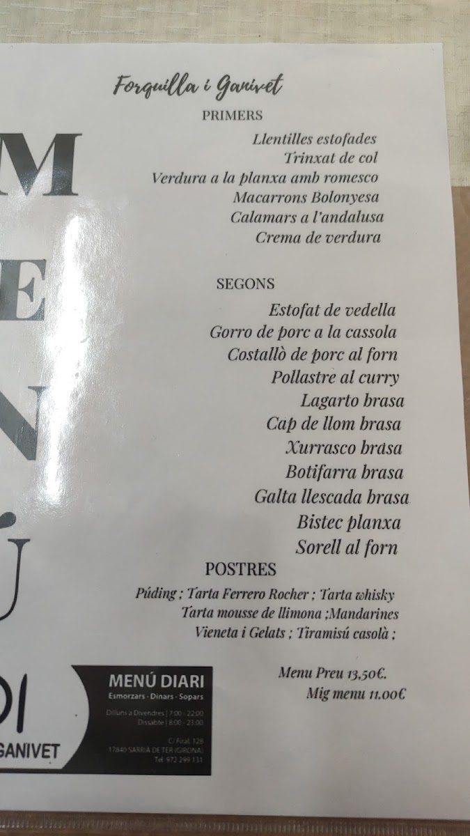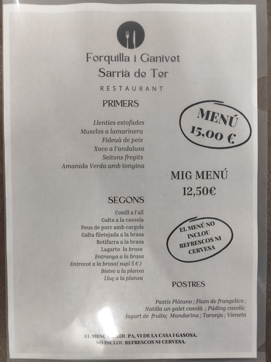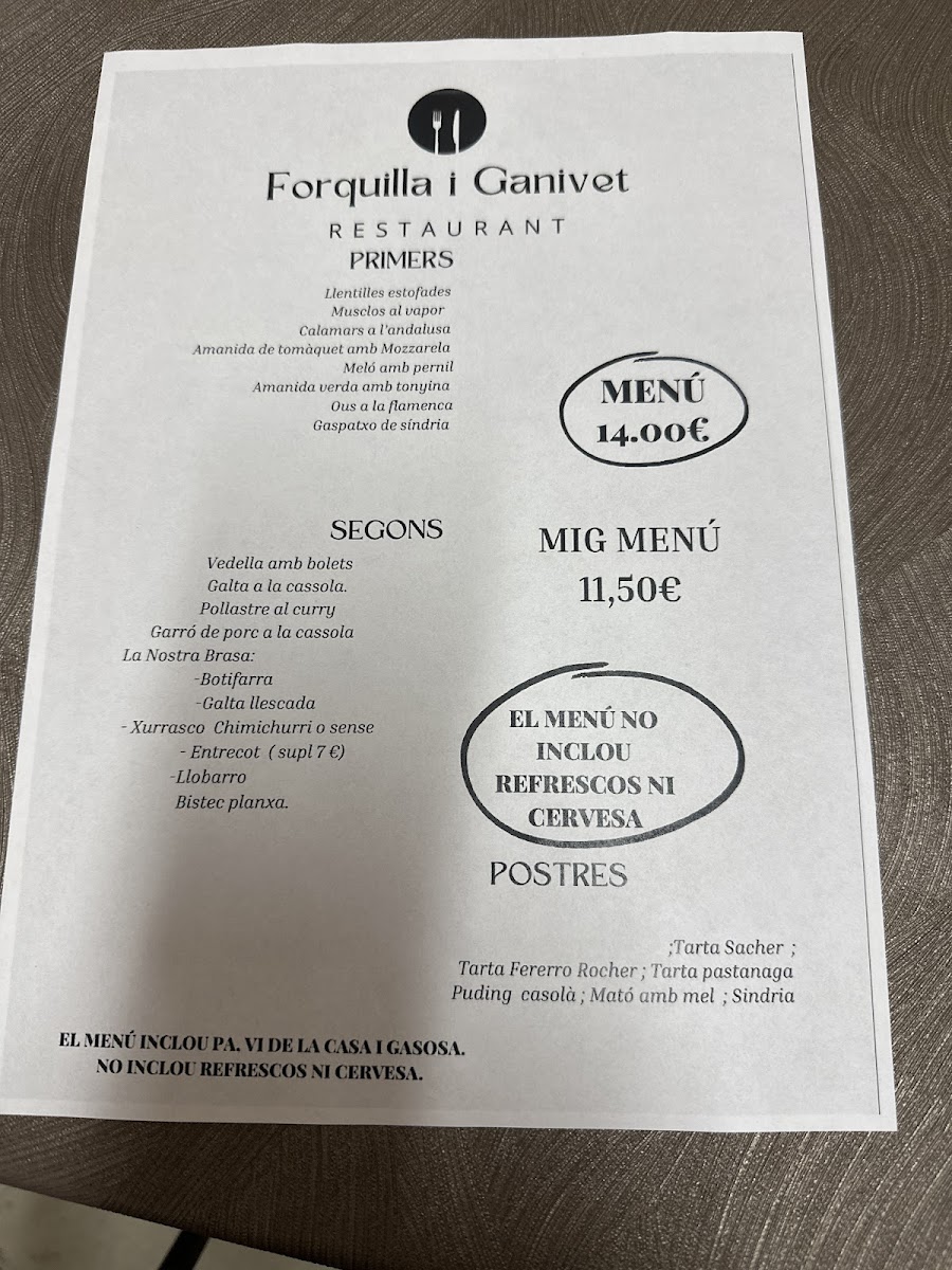 As a final impression, the menu at Forquilla I Ganivet offers a well-rounded selection that highlights traditional Spanish and Catalan flavors with a clear focus on quality ingredients and comforting, authentic recipes. Dishes like Pulpo A la Gallega and Gambas A la Plancha showcase the kitchen’s skill with seafood, delivering clean, well-balanced flavors, while heartier options such as Callos, Caracoles A la Llauna, and Sopa reflect a dedication to rustic, regional cooking. Lighter, vegetable-forward choices like Escalivada and classic seafood preparations such as Mejillones A la Marinera provide variety across the menu, ensuring there is something for different tastes. To finish, the Tarta de Queso stands out as a satisfying and creamy dessert that rounds off the meal nicely. Overall, the menu feels thoughtful and traditional, offering generous portions and familiar flavors executed with care, making it a satisfying experience for those looking to enjoy classic Spanish cuisine in a relaxed setting.